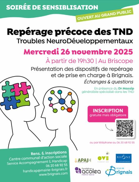Le service Accompagnement et Handicap vous donne rendez-vous le 26 novembre à partir de 19h30 au Briscope pour une soirée de sensibilisation sur le repérage précoce des TND.