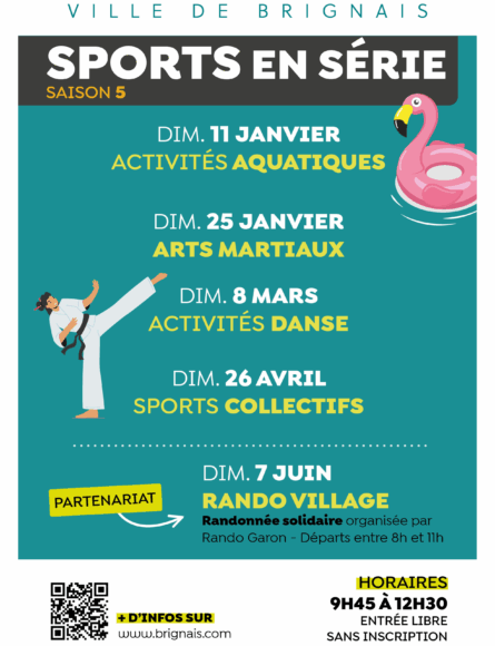 Après le succès des 4 premières saison des Sports en série, la Ville de Brignais – accompagnée des associations brignairotes – renouvelle l’expérience dès janvier 2026.